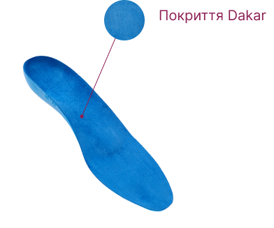Стелька имеет целостное анатомически сформированное основание из вспененного полиуретана. Этот материал обеспечивает отличную амортизацию и обладает высокими ударопоглощающими свойствами. Износостойкое покрытие стельки Dakar предотвращает скольжение стопы и впитывает влагу, что способствует поддержанию здорового микроклимата в обуви. Ярко выраженные пеллеты разгружают свод стопы, а боковые борта стабилизируют пятку и удерживают стопу в правильном положении. В отличие от обычных стельок Memopur Dakar Blue имеет более плотное основание для лучшей коррекции. Слои стельки соединяются без клея, под действием пресса и высокой температуры.