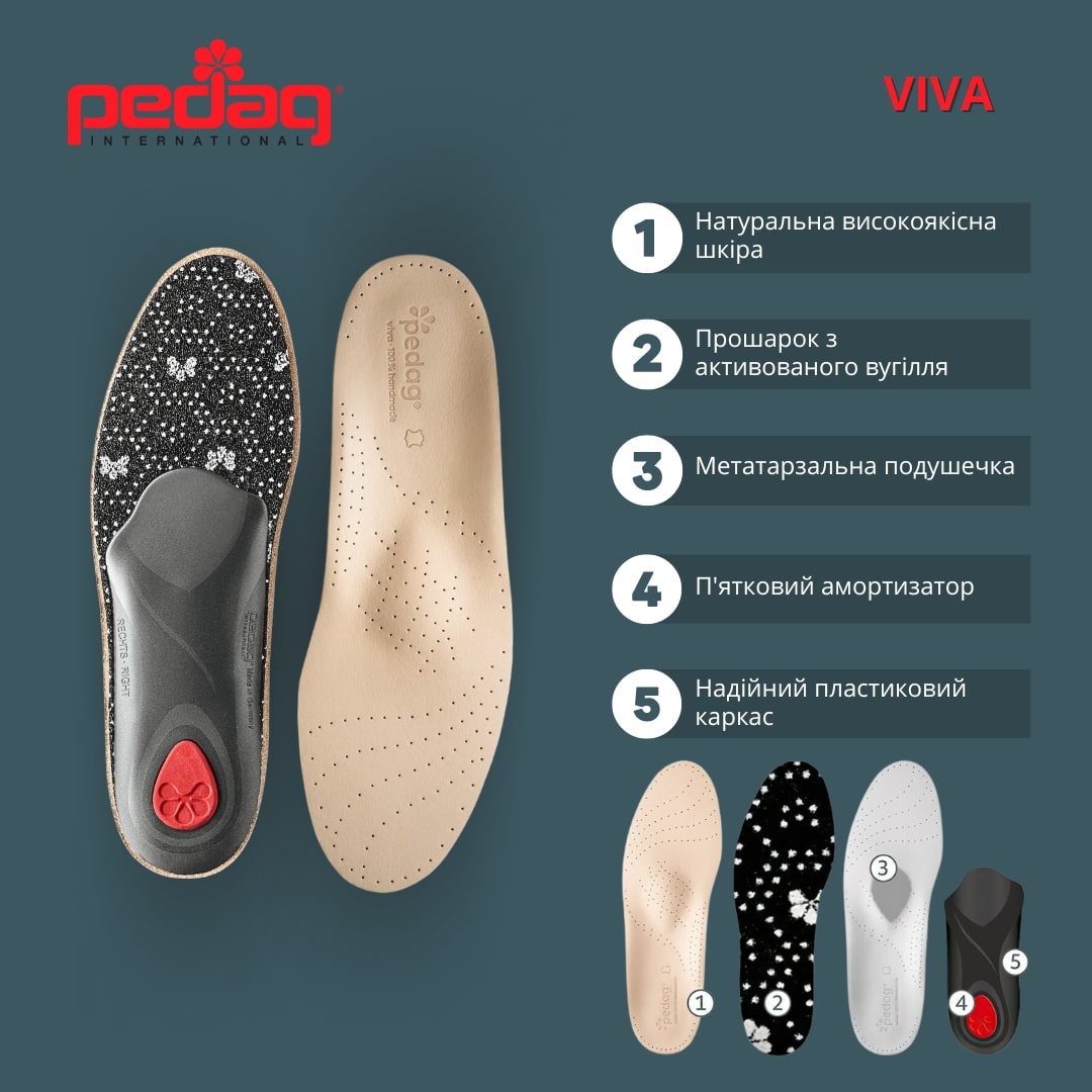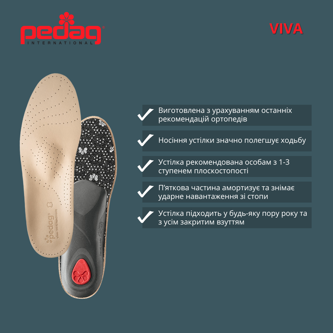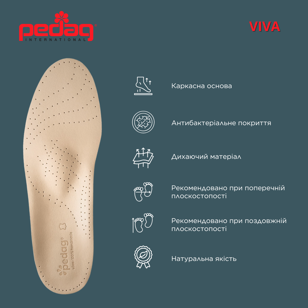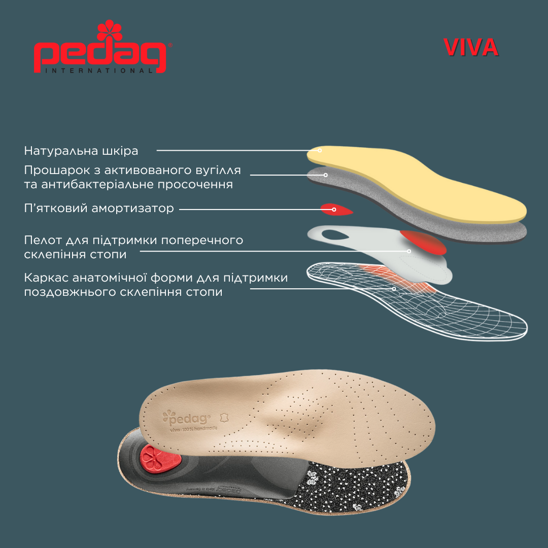 - Устілка-супінатор Viva виготовлена з натуральної шкіри.