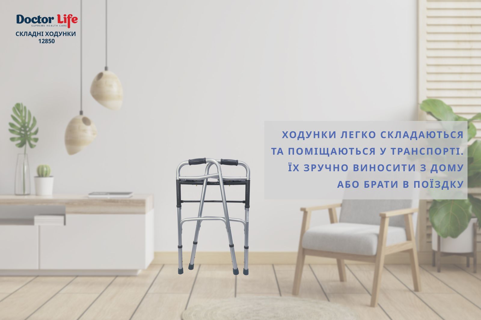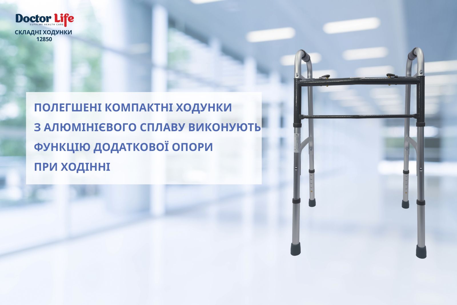 Ходунки складні алюмінієві виробництва фірми Dr, Life (Тайвань) призначені для додаткової опори під час пересування. Рекомендується використовувати пацієнтам, які не можуть самостійно рухатися, наприклад, після операцій, травм або для літніх користувачів з ослабленою м'язовою системою, а також у тому випадку, коли людина важко утримує самостійно рівновагу, наприклад, після інсультів.