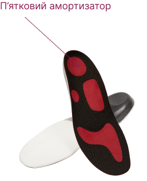 Пружний амортизатор п'яти з характеристиками демпфування захищає п'яту від імпульсного навантаження при ходьбі і заняття спортом.