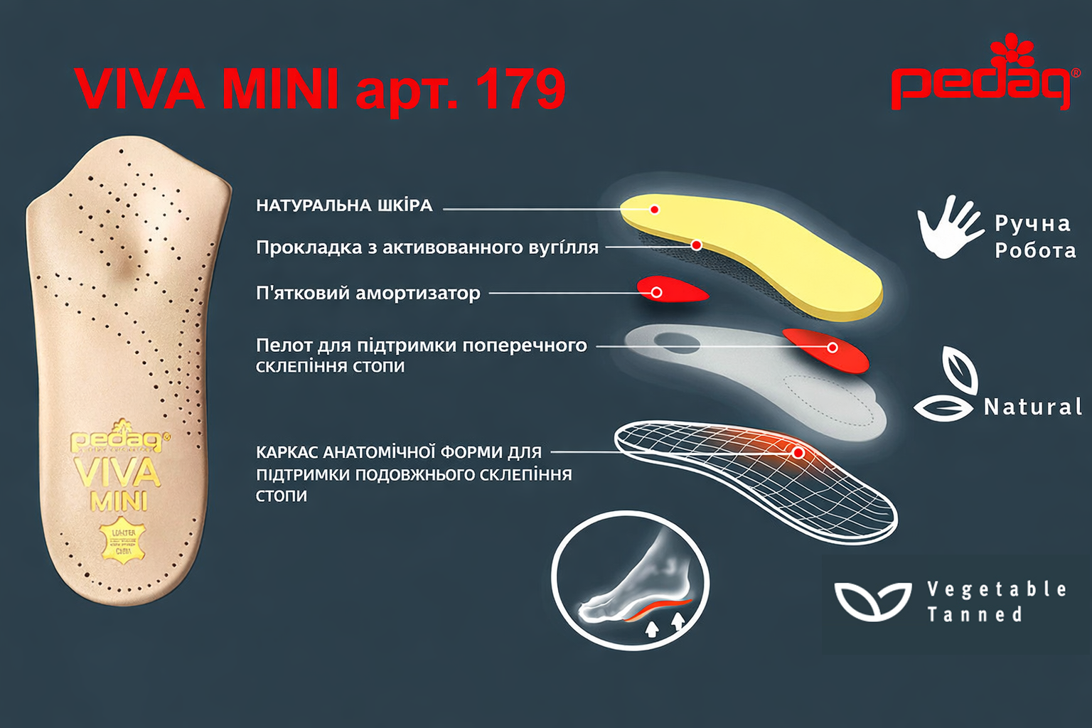 Опис Каркасна ортопедична напівустілка Pedag Viva Mini 179 (Німеччина)