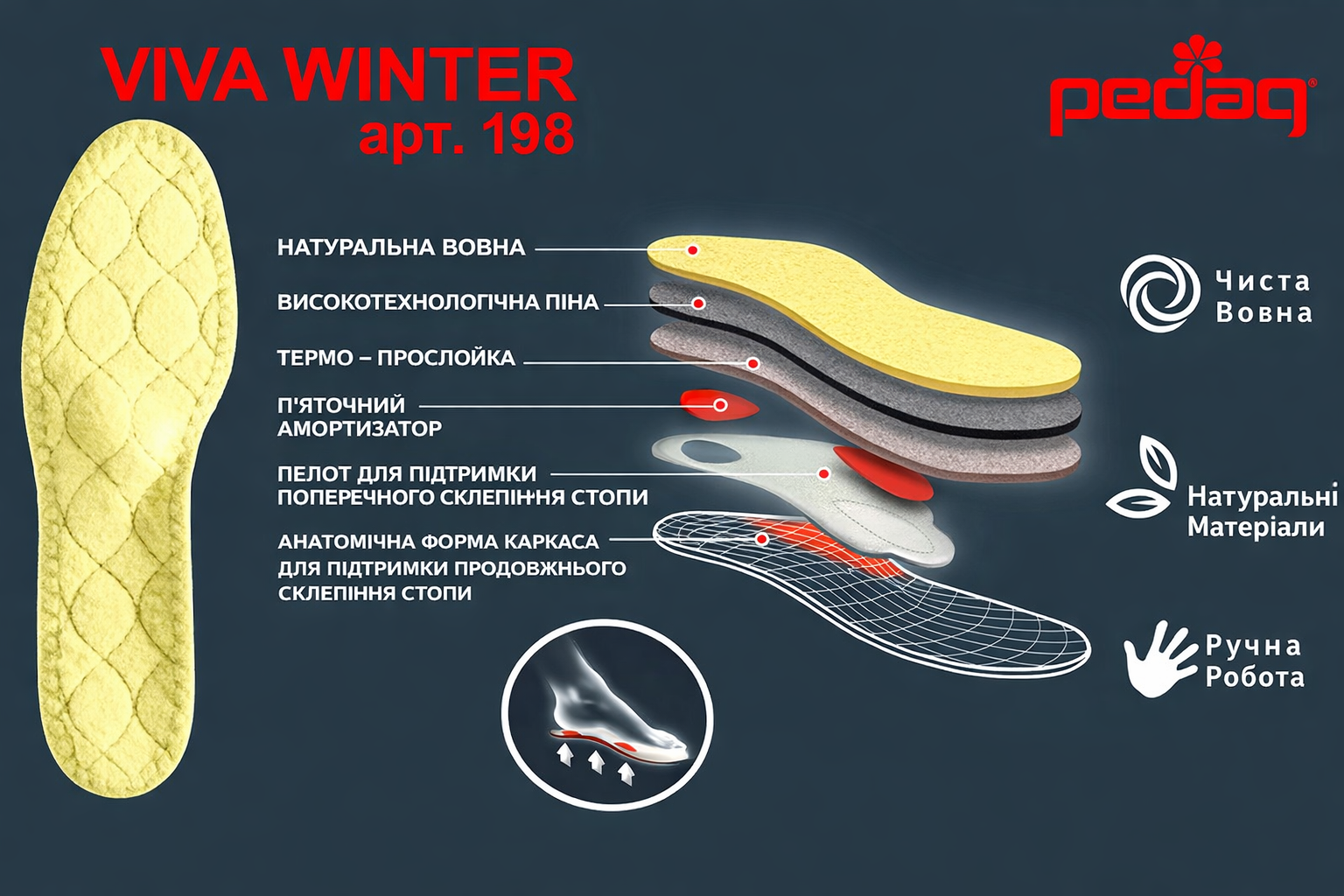 Опис Ортопедична устілка супінатор Pedag Viva Winter зимова (Німеччина)