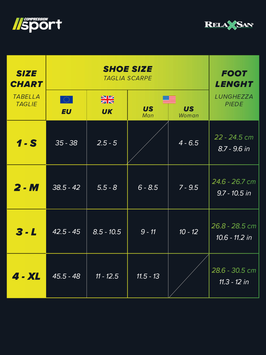 Анатомічна устілка з підтримуючими стрічками забезпечує додатковий захист найбільш чутливих ділянок стопи, таких як ахілл та п'ята. Як і всі продукти Relaxsan, ці шкарпетки на 100% виготовлені в Італії з високоякісної сировини.