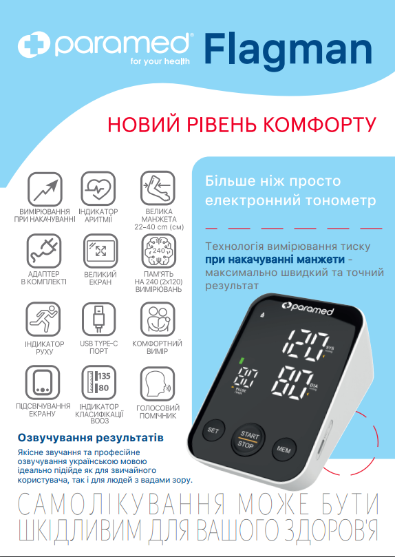 Автоматичний тонометр Paramed Flagman з манжетою на плече – більше, ніж просто електронний тонометр!